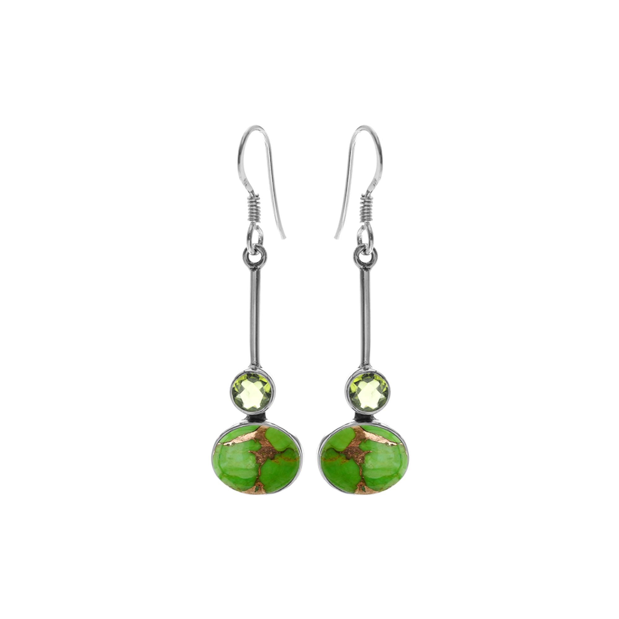 Oval green mohave turquoise and peridot facet bar drop earrings