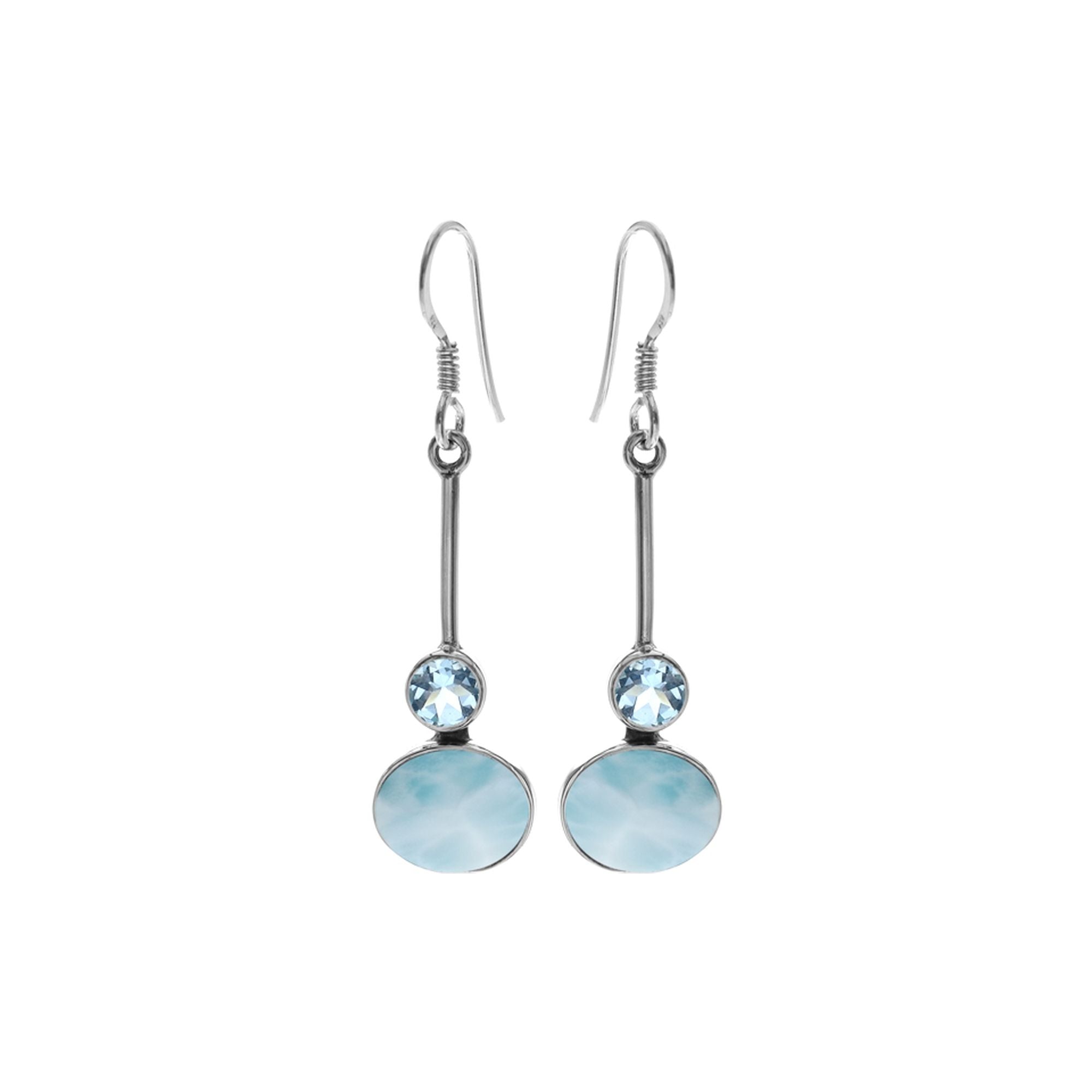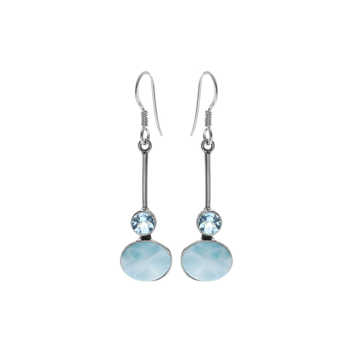 Oval larimar and blue topaz bar drop earrings