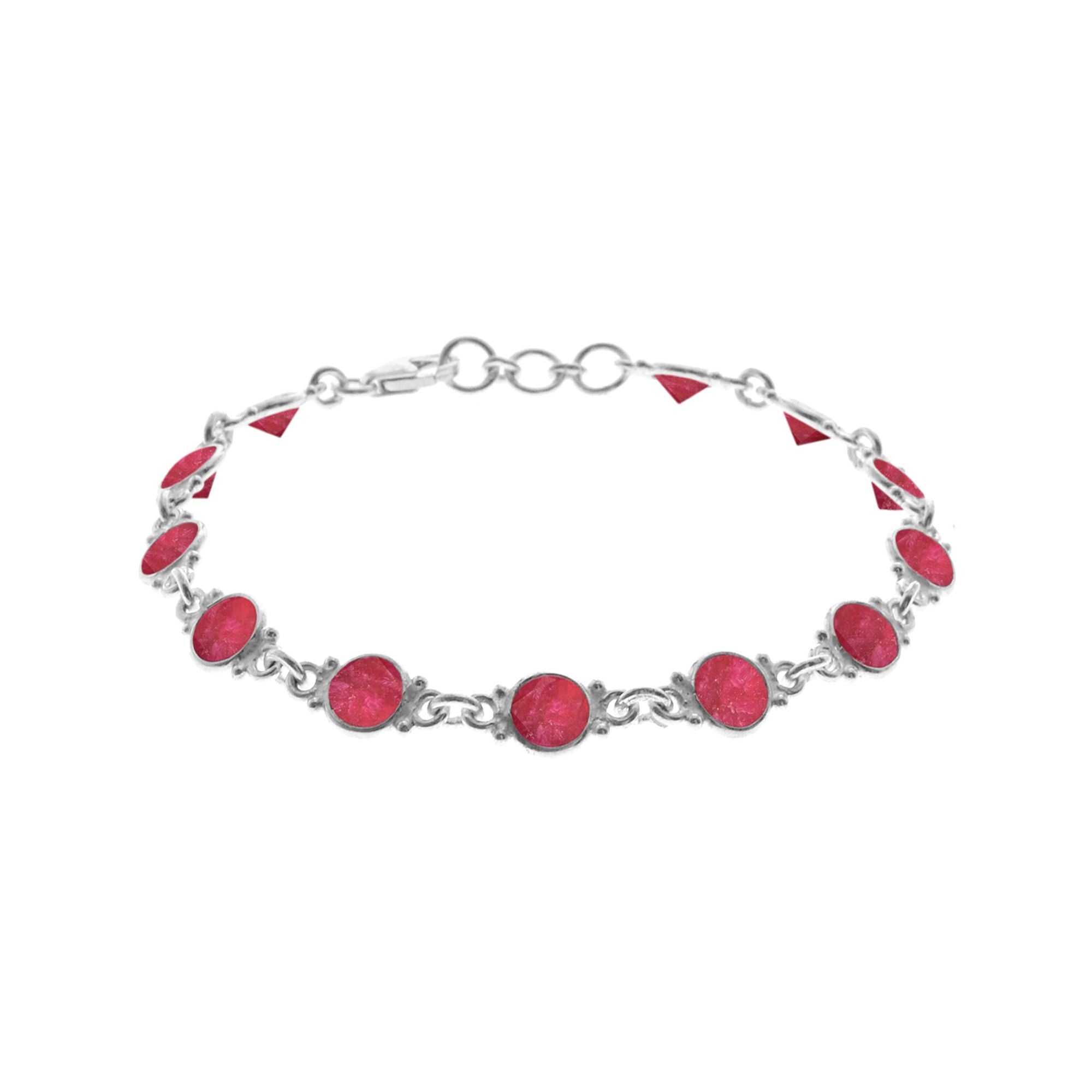 Ruby quartz twelve round stone bezel bracelet