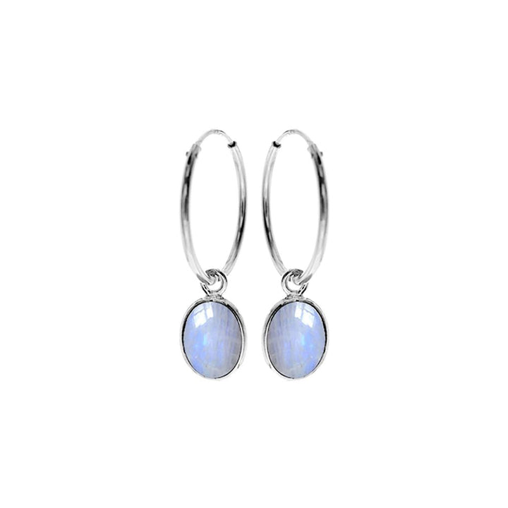 18mm Silver sleeper with hanging oval rainbow moonstone