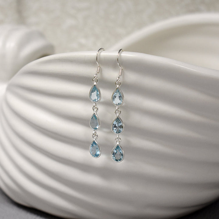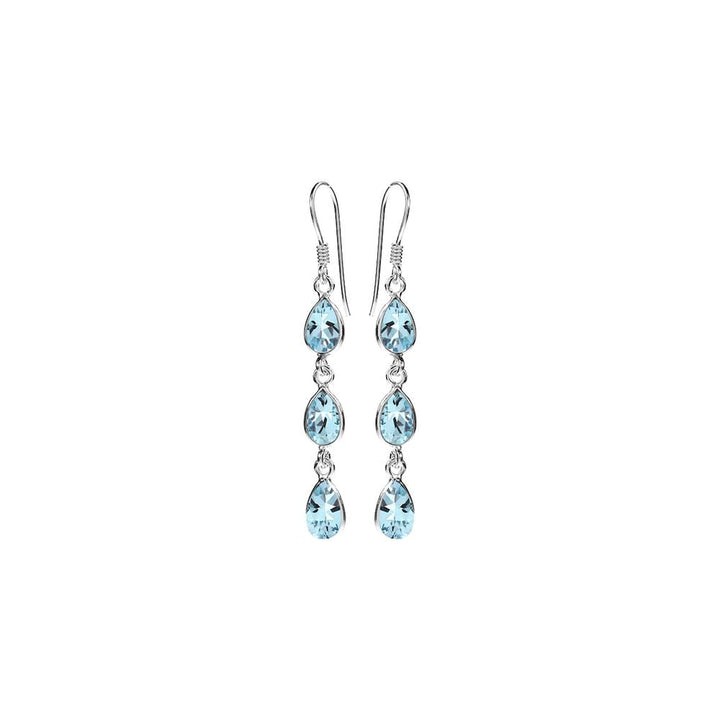 Triple teardrop bezel set blue topaz earrings