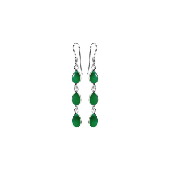 Triple teardrop bezel set green agate earrings
