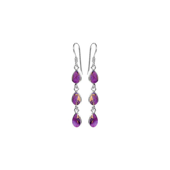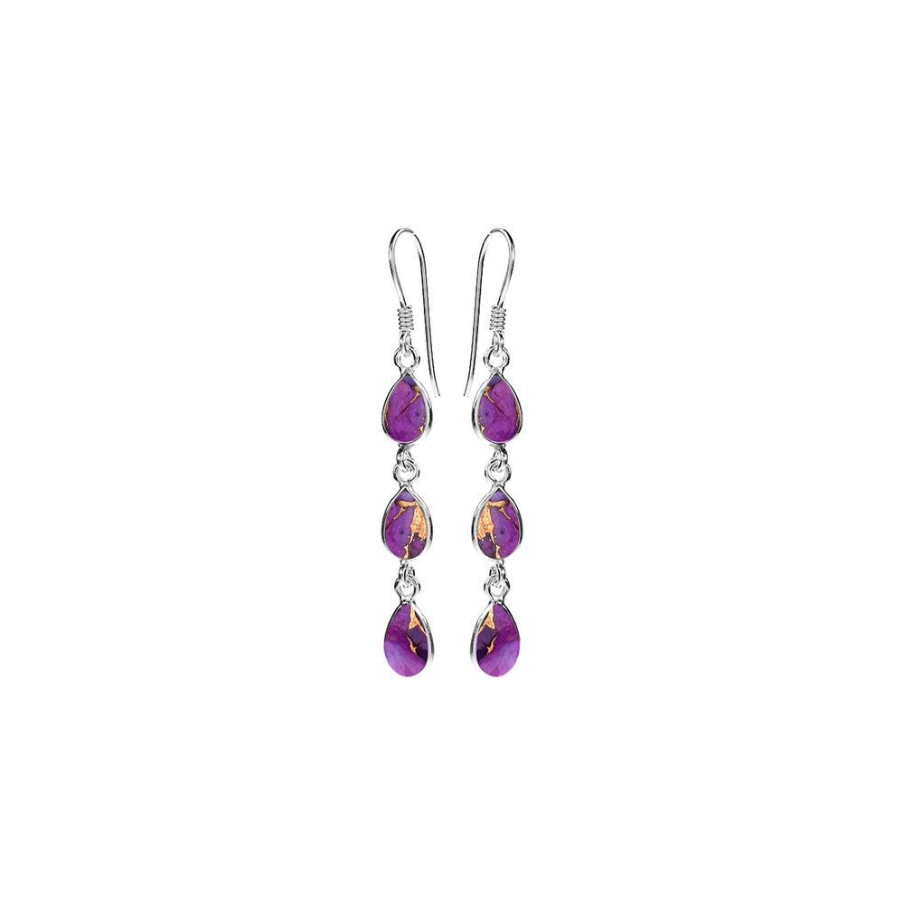 Triple teardrop bezel set purple mohave earrings