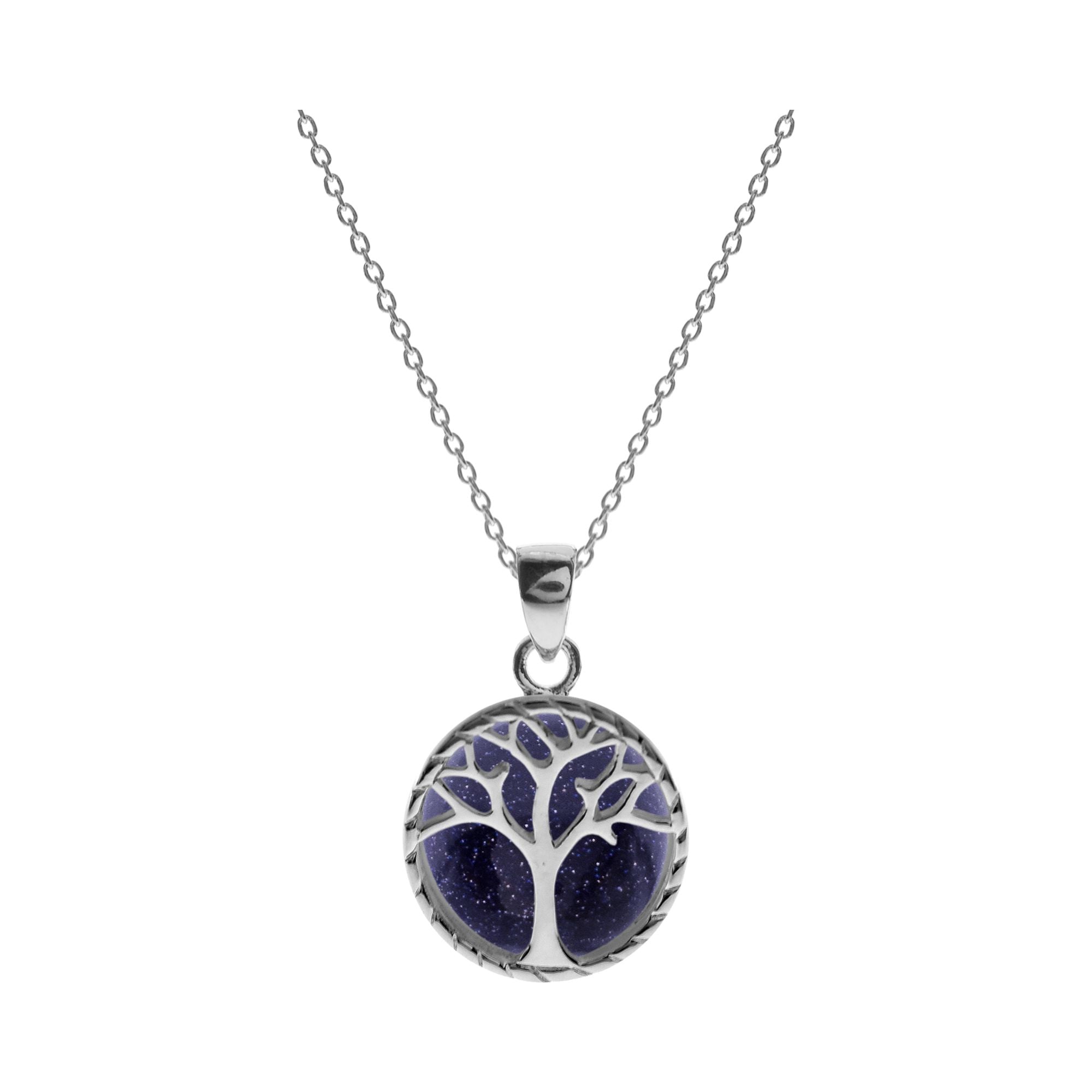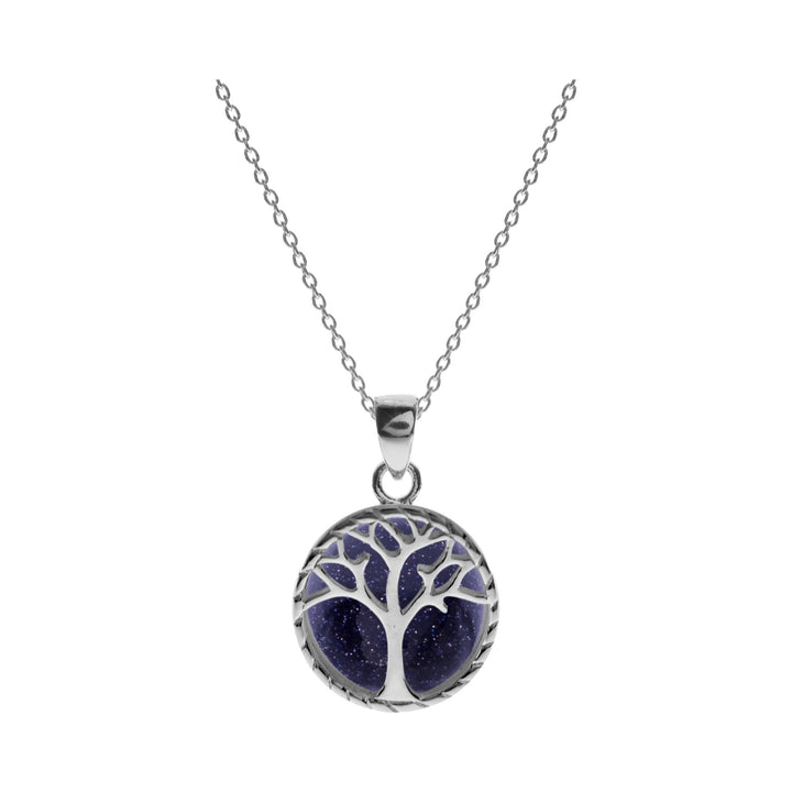 Blue goldstone and 925 silver necklet with Tree of Life motif
