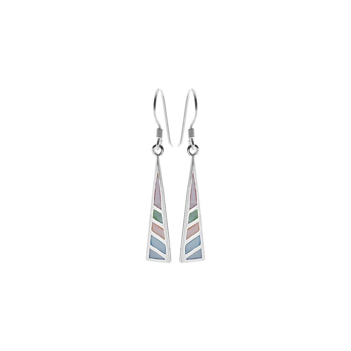 Diagonal stripe multi-coloured mother of pearl triangle and silver earrings
