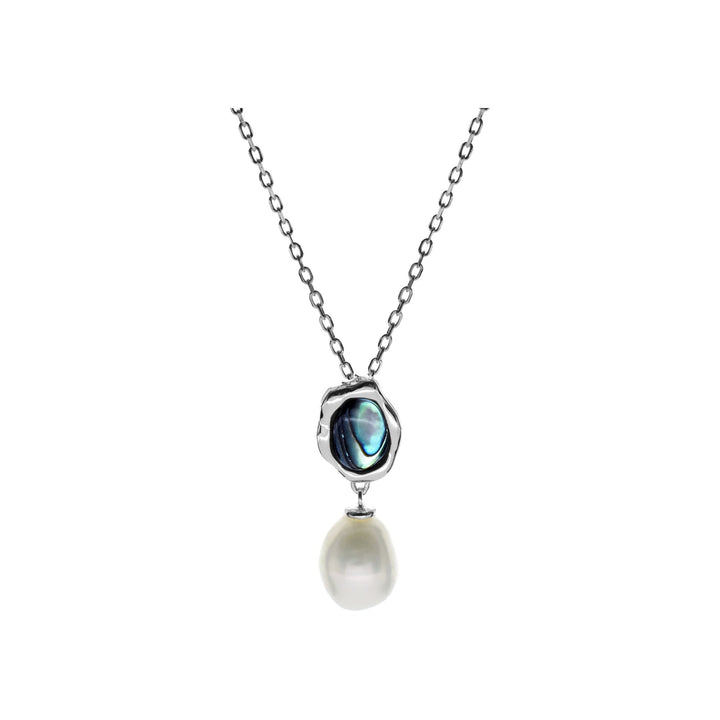 Silver organic paua shell and freshwater pearl necklace
