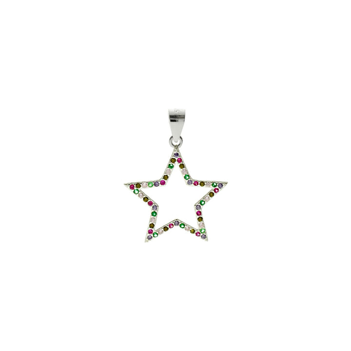 Rainbow cubic zirconia and silver star outline pendant