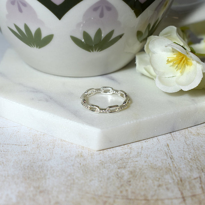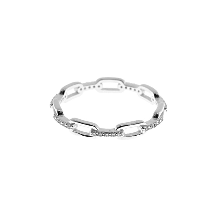 Chain link silver ring with alternate links cubic zirconia set