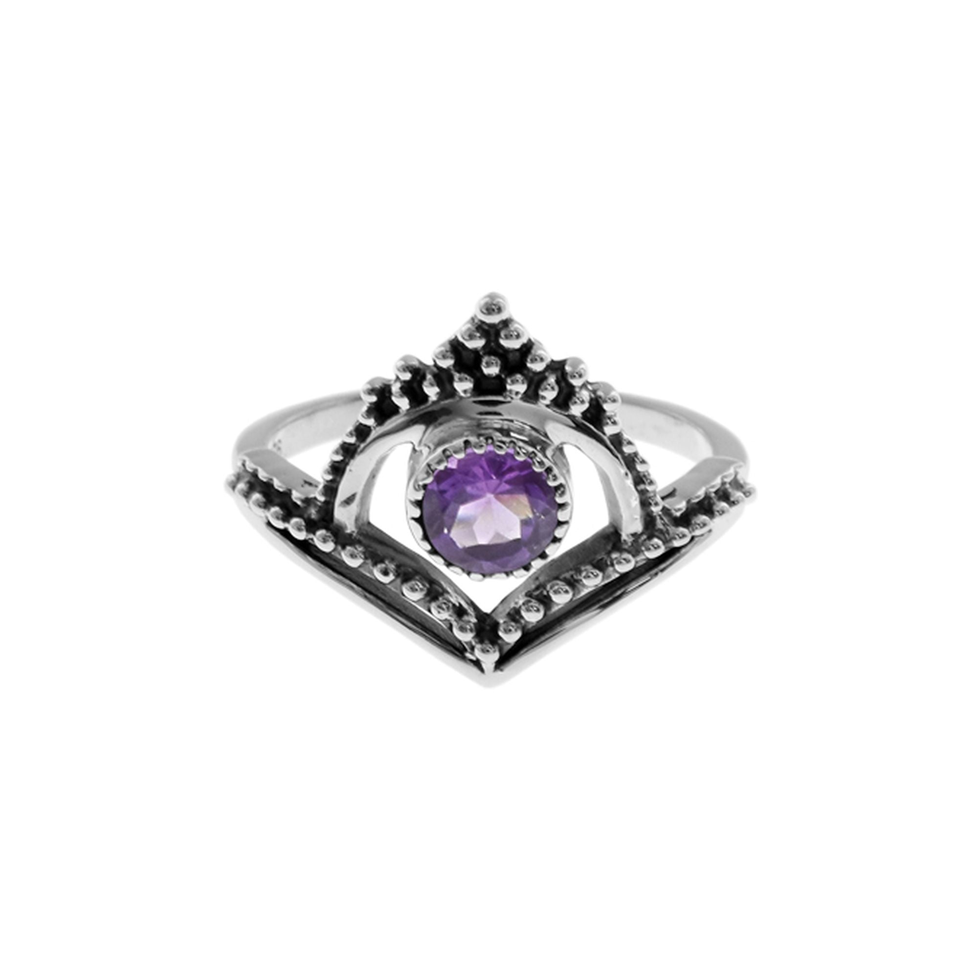 Amethyst facet chevron and arch ring with bead detailing