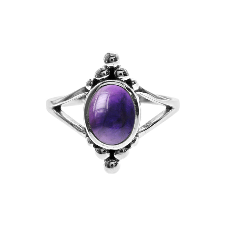 Silver and amethyst split band ring with bead detail