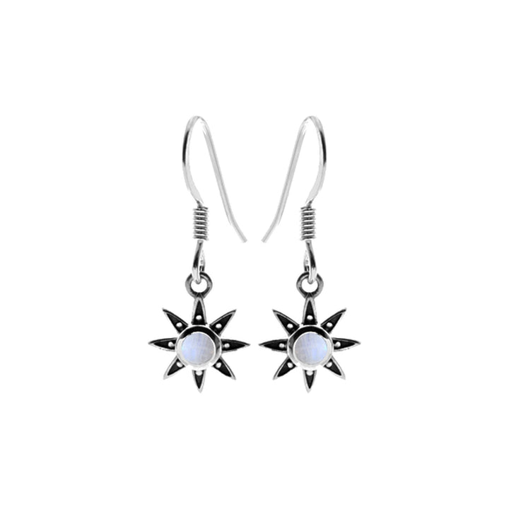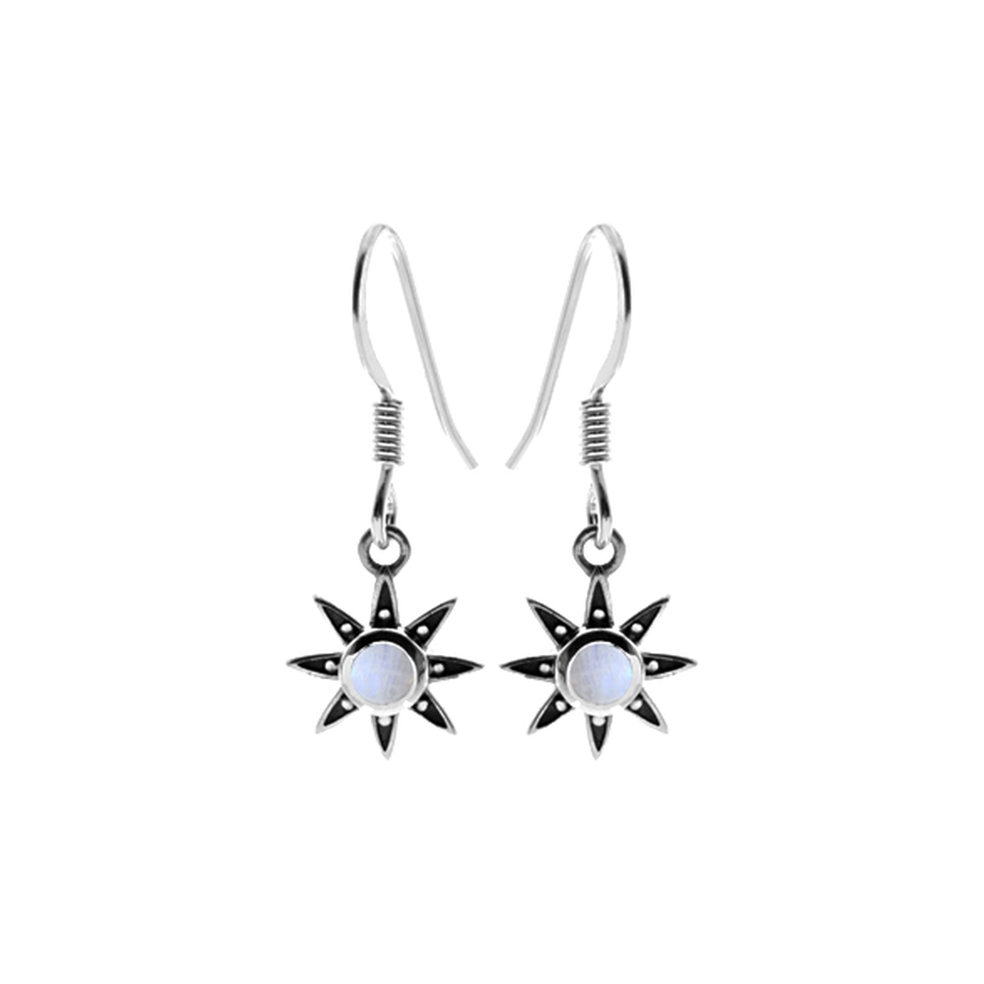 Silver sunstar dotted earrings set with rainbow moonstone