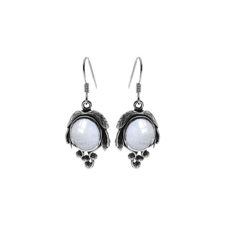 Oval rainbow moonstone inside grapevine earrings