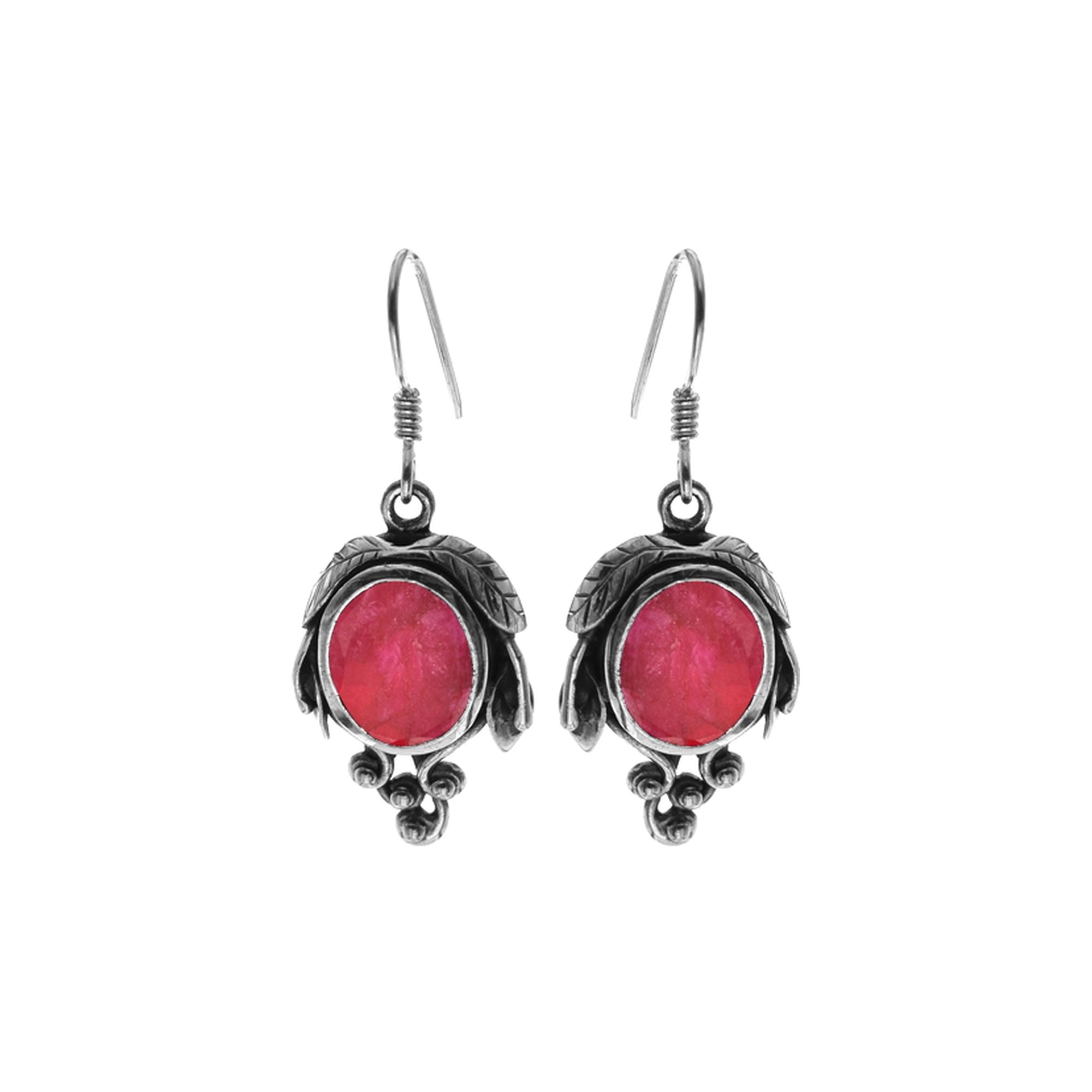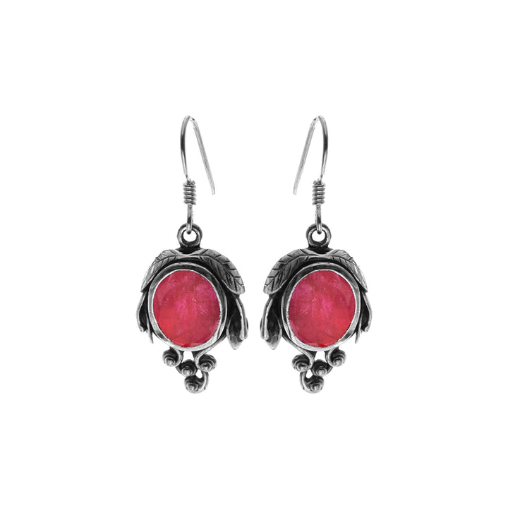 Oval ruby quartz inside grapevine earrings