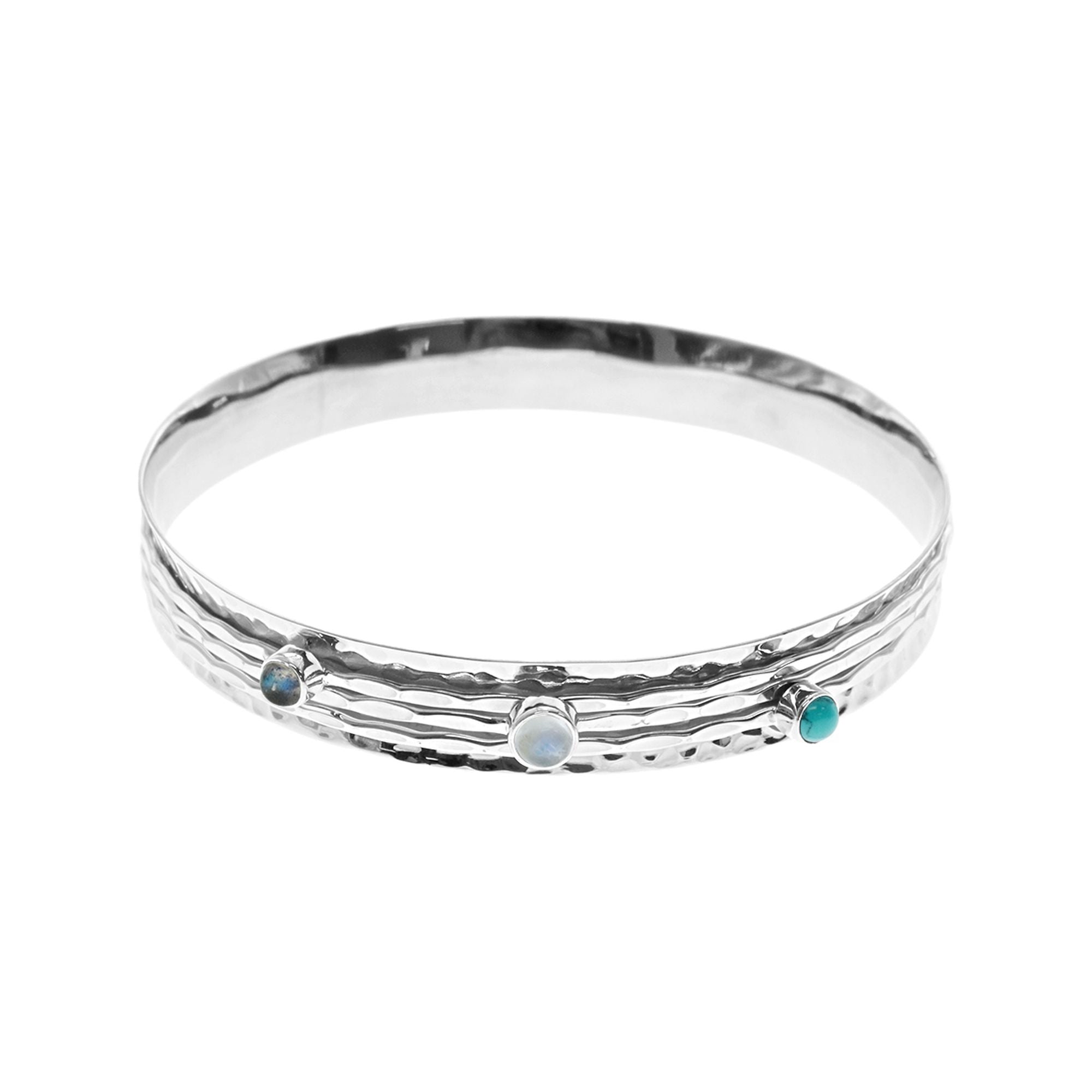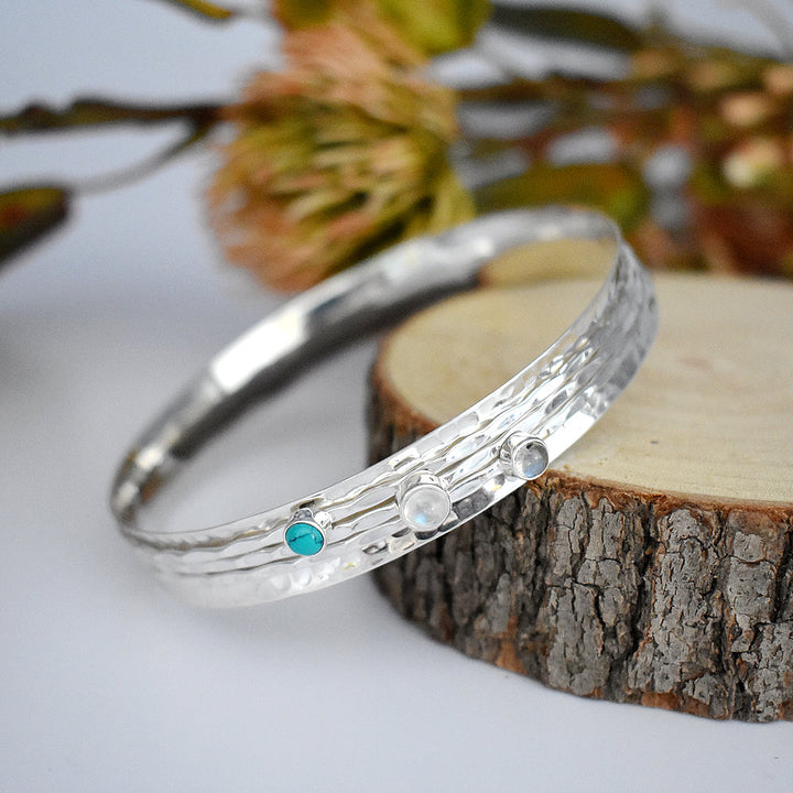 Spinner bangle with rainbow moonstone, Labradorite and turquoise
