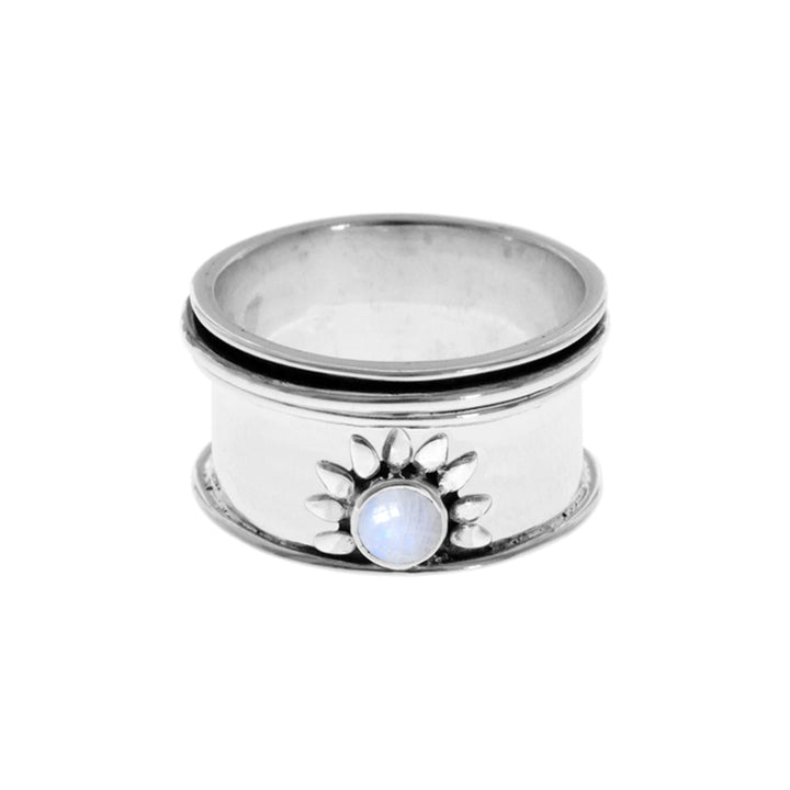 Sunburst design spinner ring with round rainbow moonstone