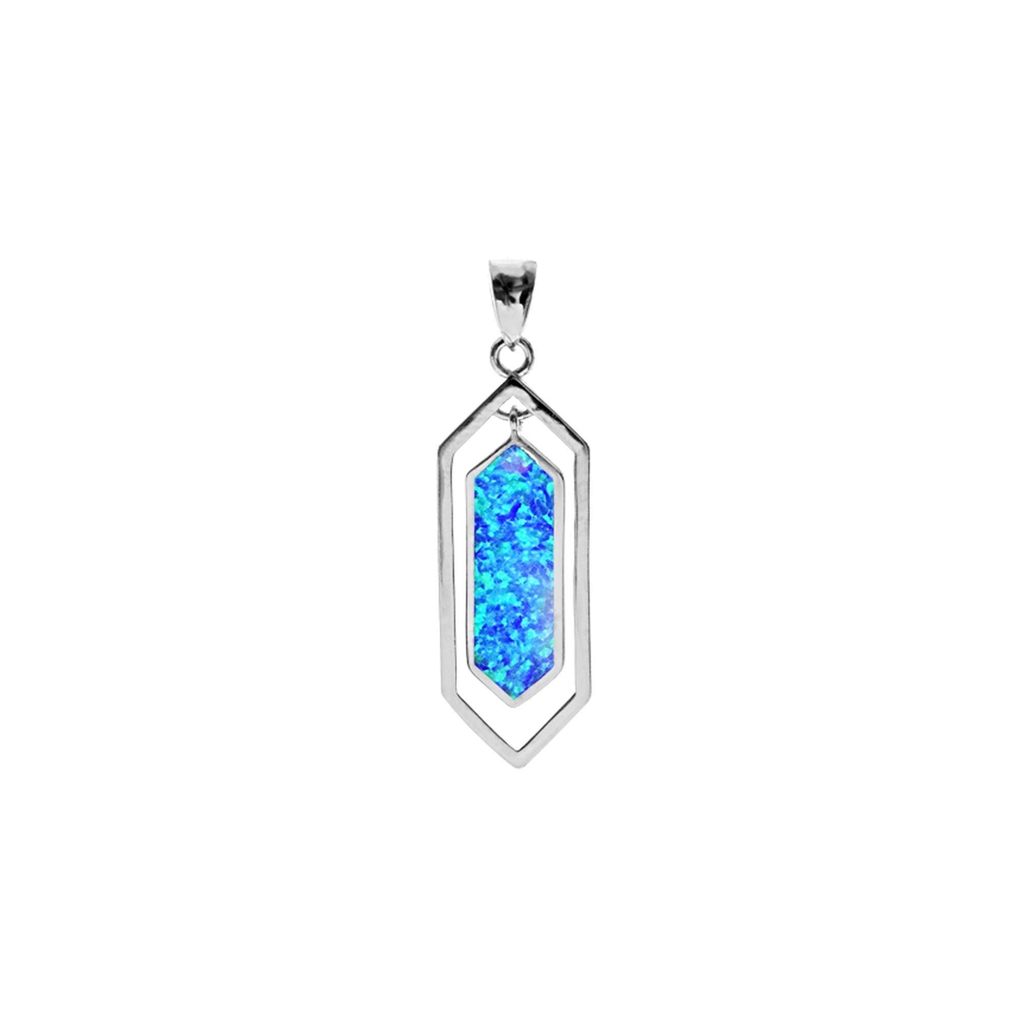 Elongated hexagon stud topped blue opalique pendant