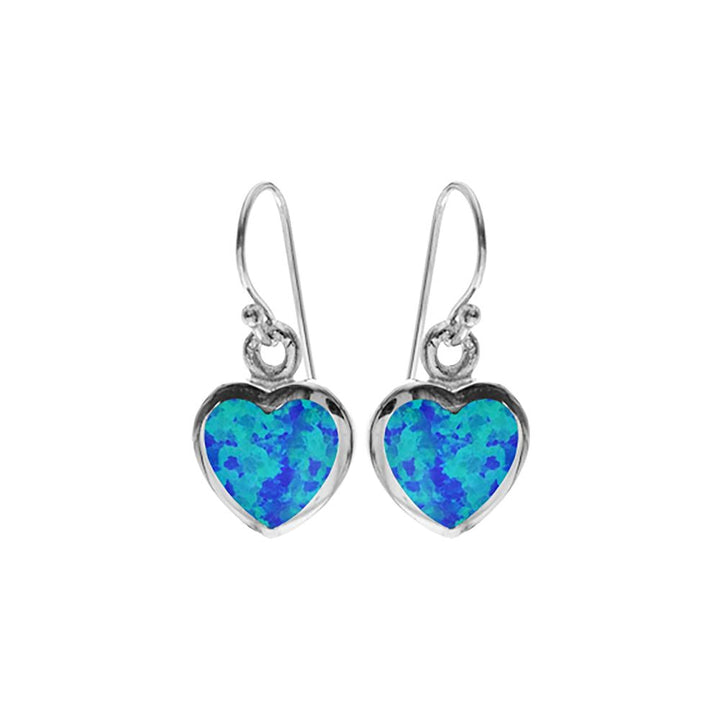 Blue opalique and silver medium heart earrings