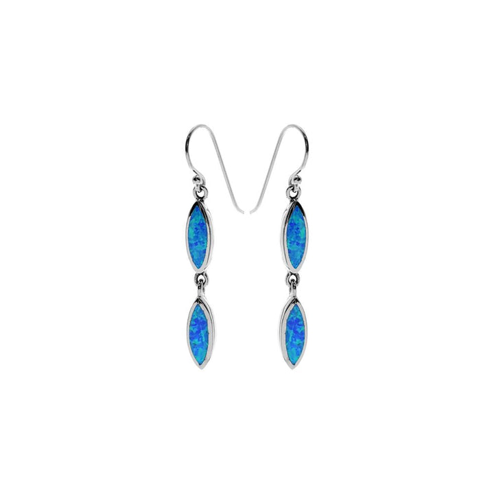 Double drop marquis blue opalique and silver earrings