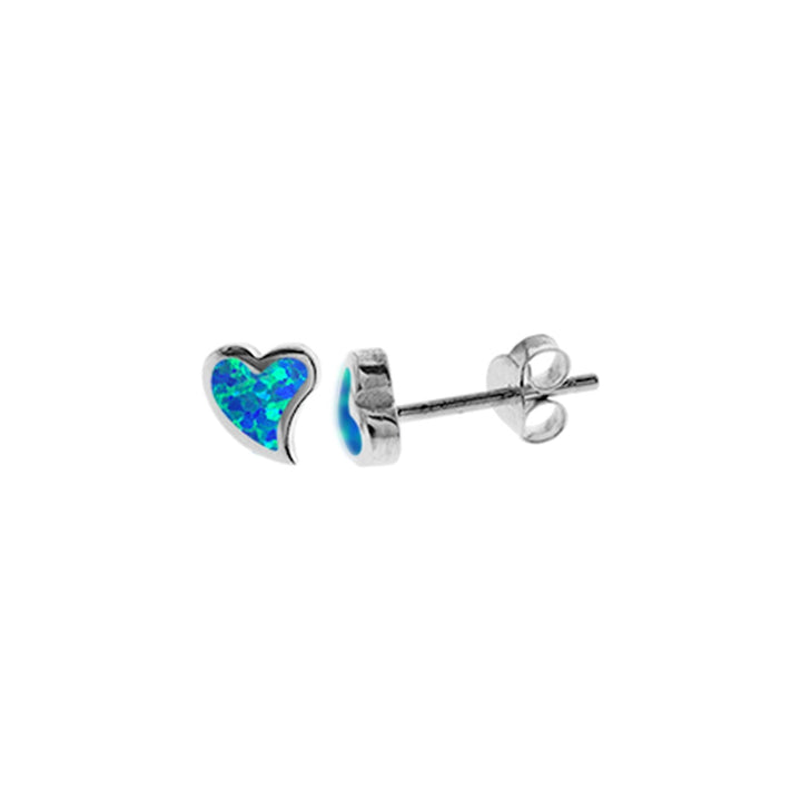 Small flush blue opalique and silver heart studs