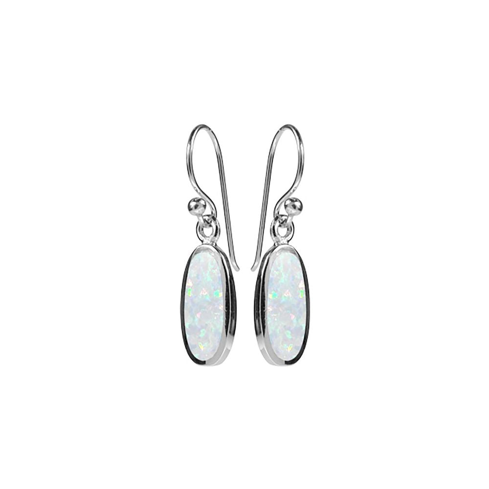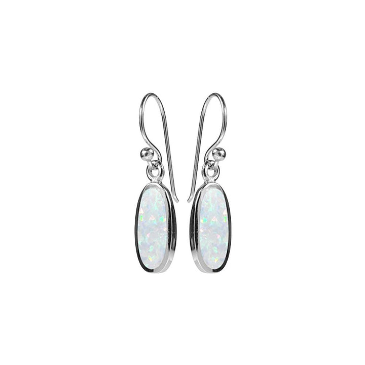 Small oval, bezel-set white opalique earrings