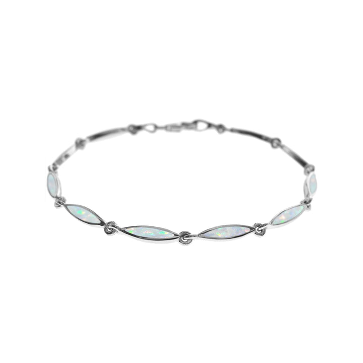 Small marquis linked white opalique and silver bracelet