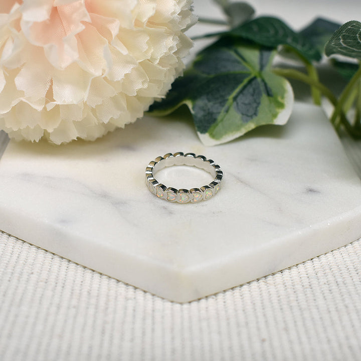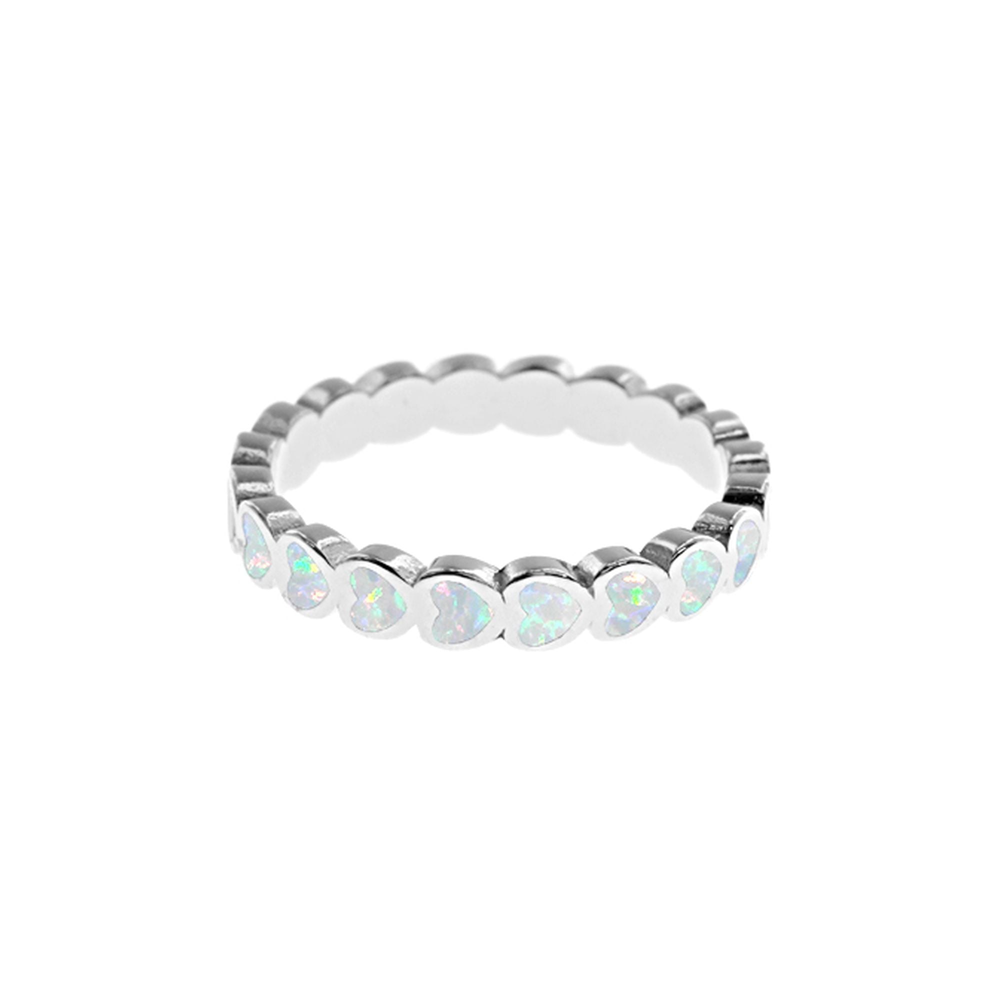 Overlapped heart white opalique and silver eternity band