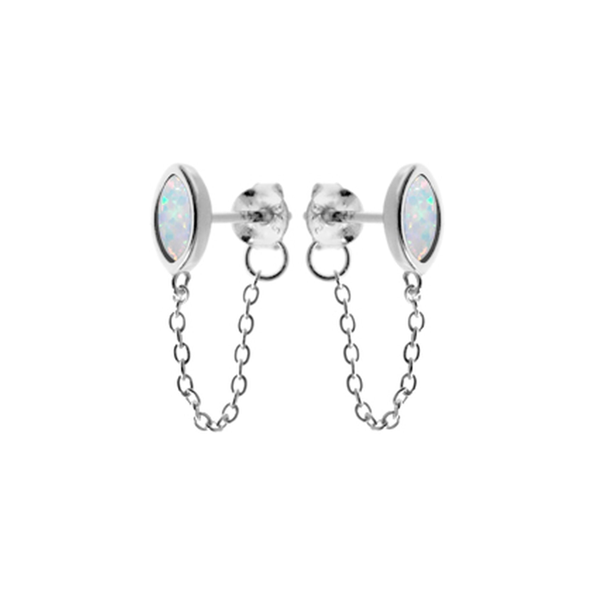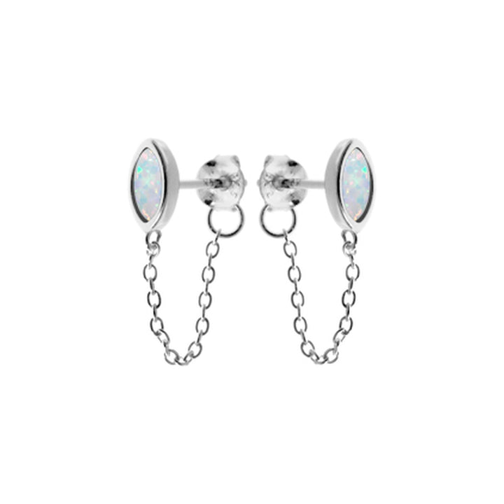 Simple white opalique marquis chain linked studs