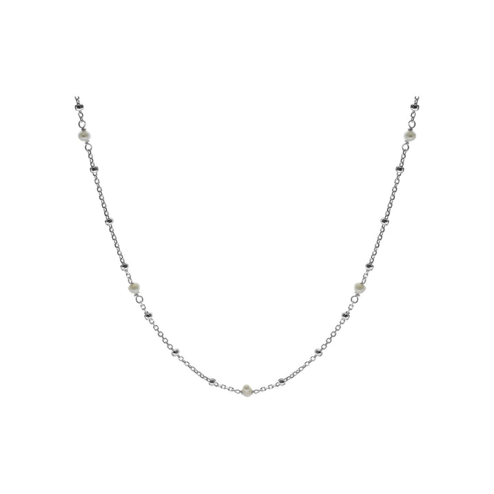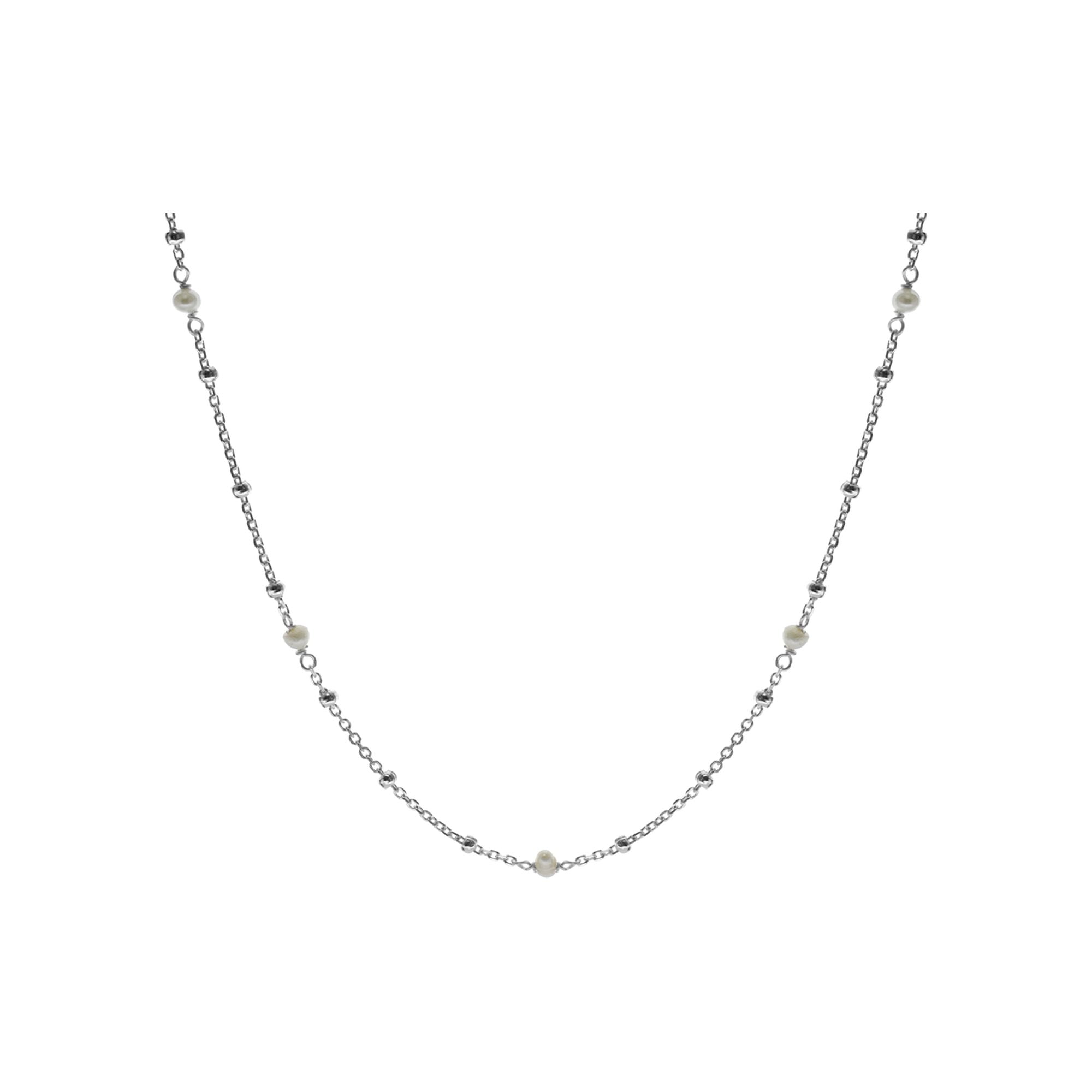 Dainty fresh water pearl with delicate trace chain and silver ball necklace. Ideal for bridal wear.