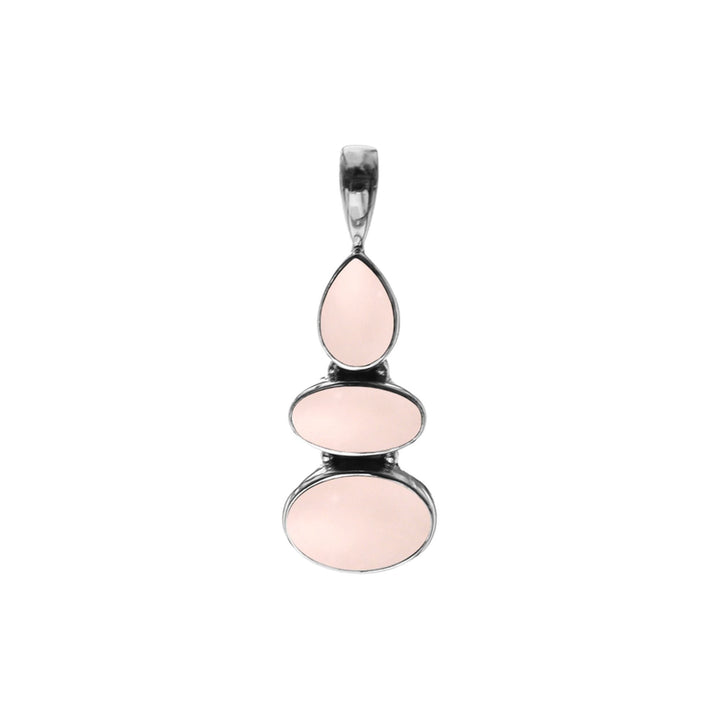 Fixed bale pendant with 3 multi shape rose quartz stones