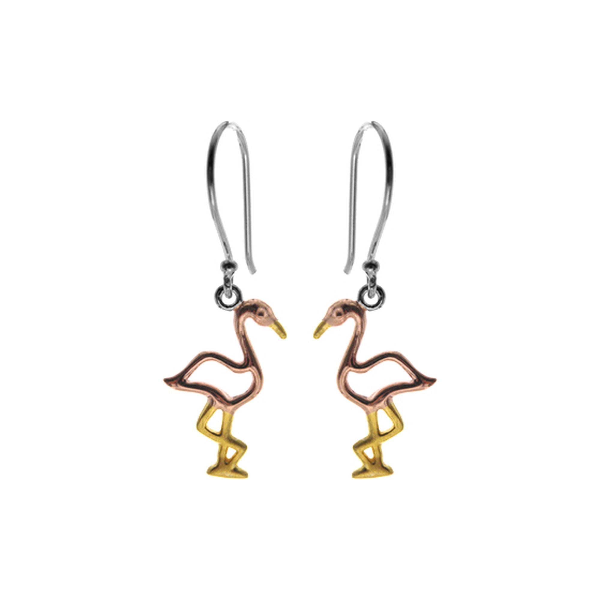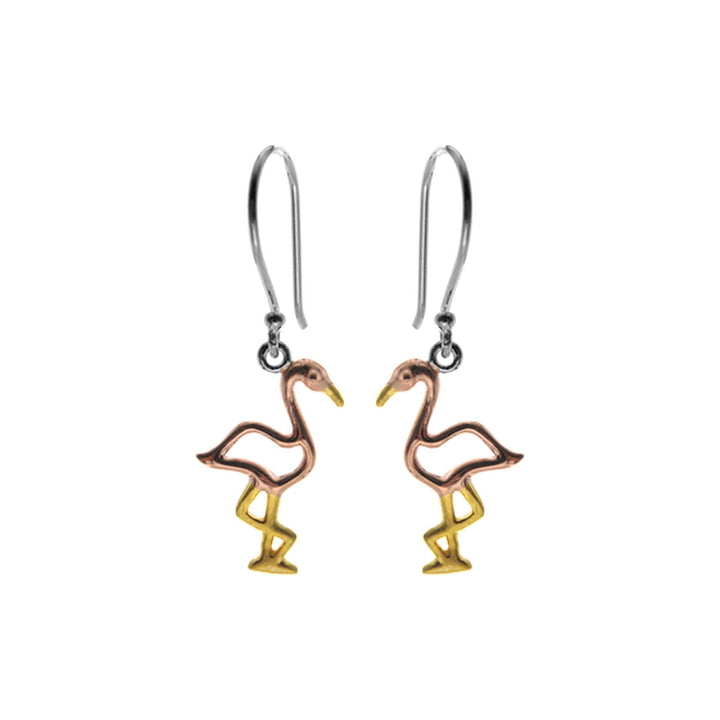 Cut out flamingo earrings with yellow and rose gold vermeil