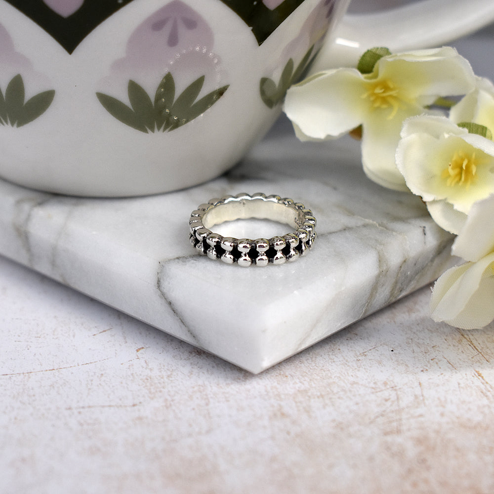 Double row oxidised disc silver ring