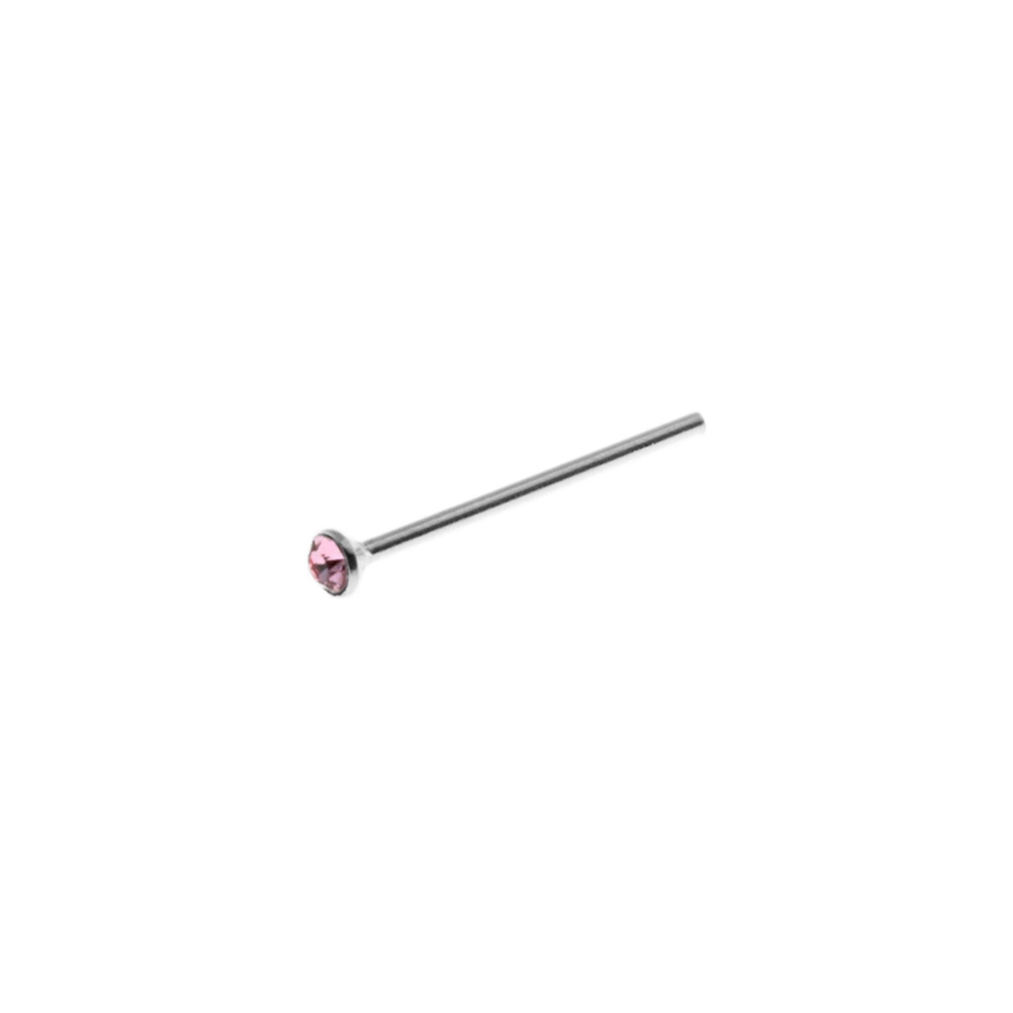 Straight 1.5mm coloured collet-set pink cubic zirconia nose pin