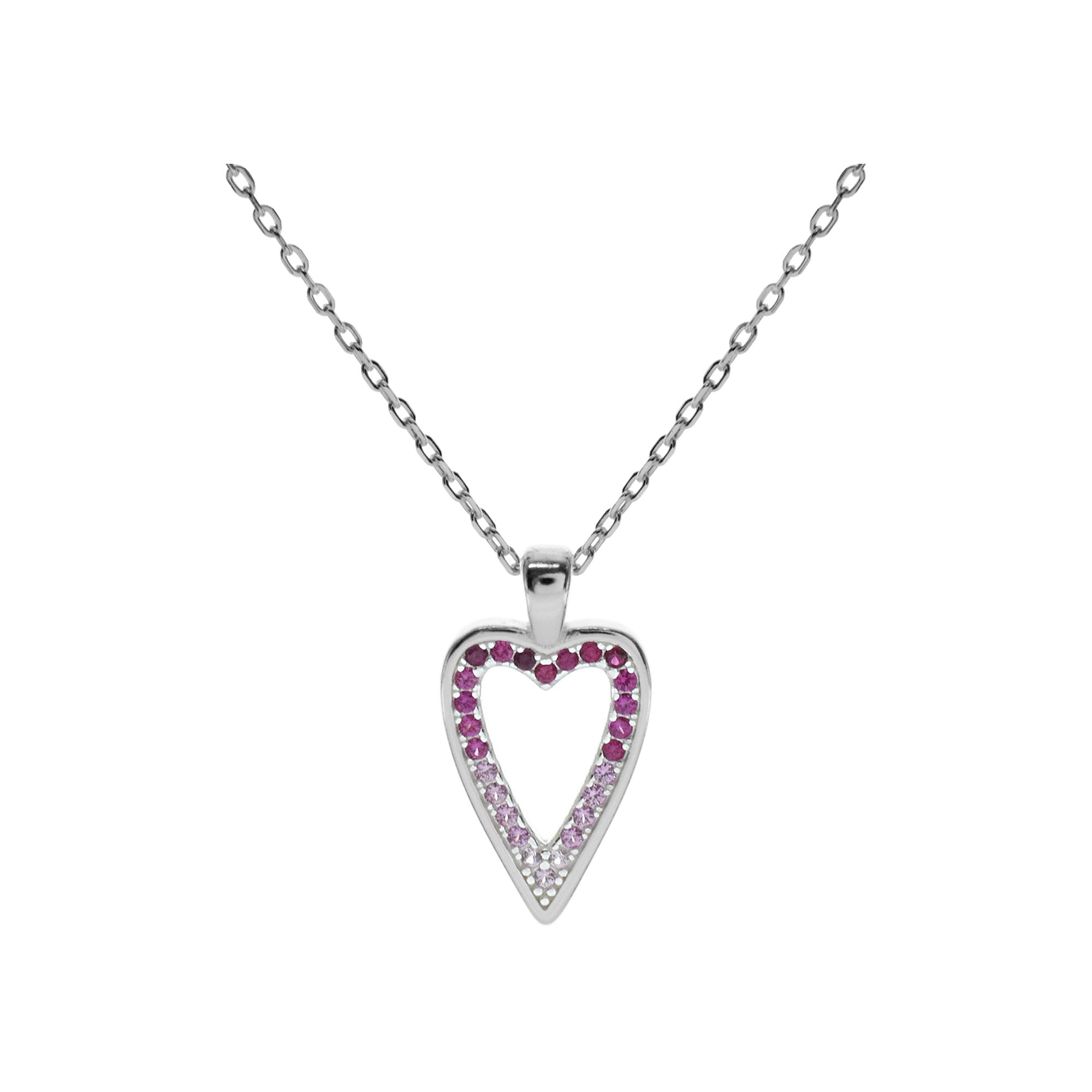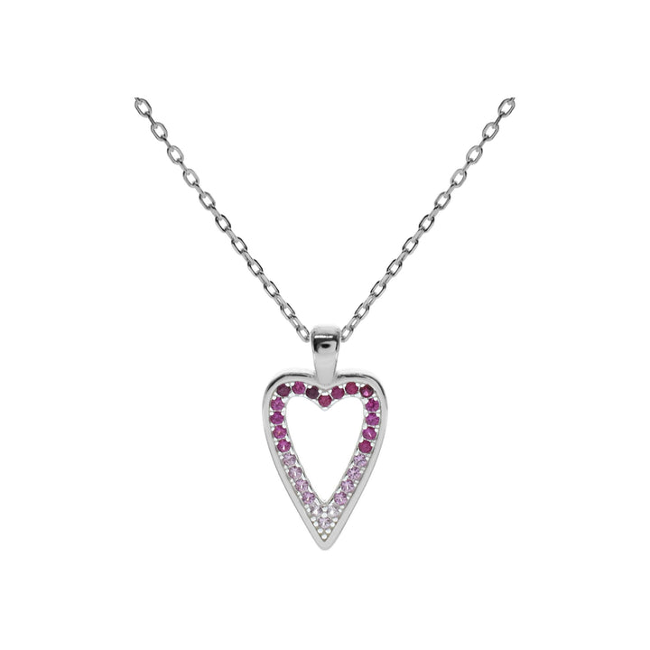 Pretty in pink silver and cubic zirconia open heart pendant on a delicate silver chain