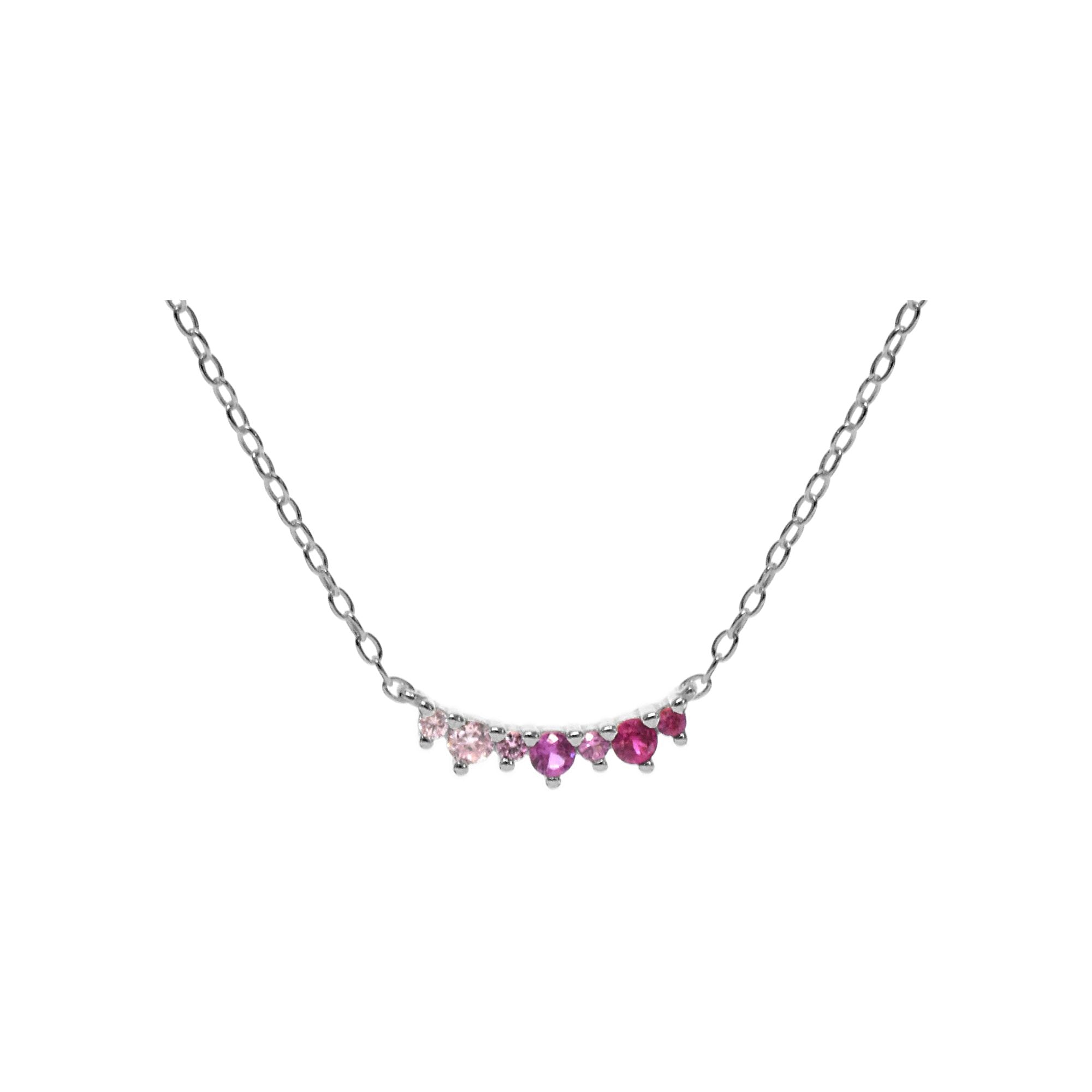 Pretty in pink 7 cubic zirconia stone curved pendant on a fine silver chain