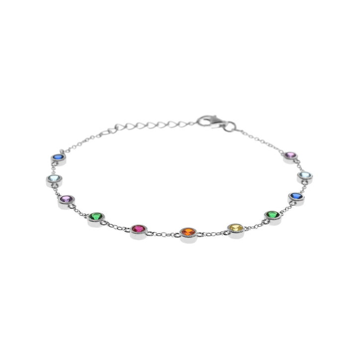 Silver bracelet with eleven small round multi-colour cubic zirconia stones