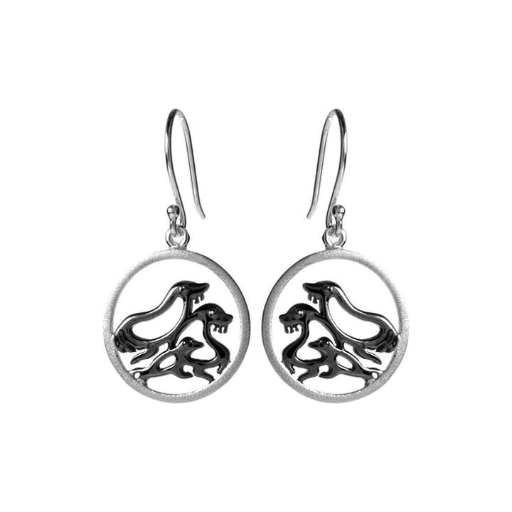 Silver hoop with black rhodium family of seals earrings