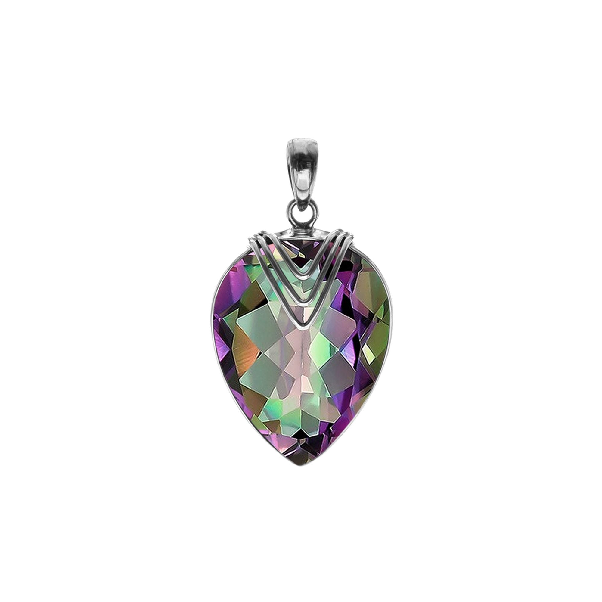 Inverted mystic topaz teardrop with silver 3 v overlay