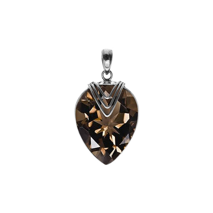 Inverted smokey quartz teardrop with silver 3 v overlay pendant