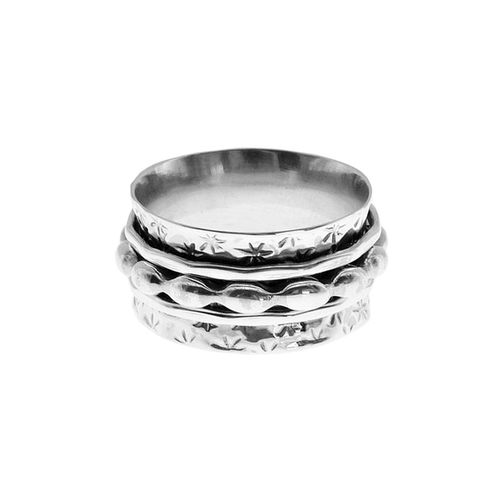 10mm patterned silver spinner ring with triple beaded and plain spinners