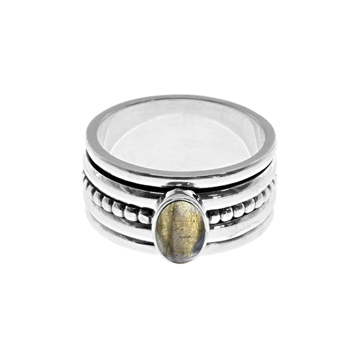 Wide dotted band labradorite and silver spinning ring