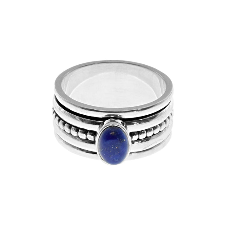 Wide dotted band lapis and silver spinning ring