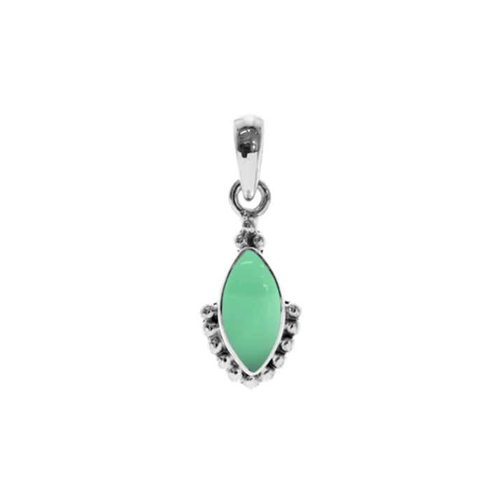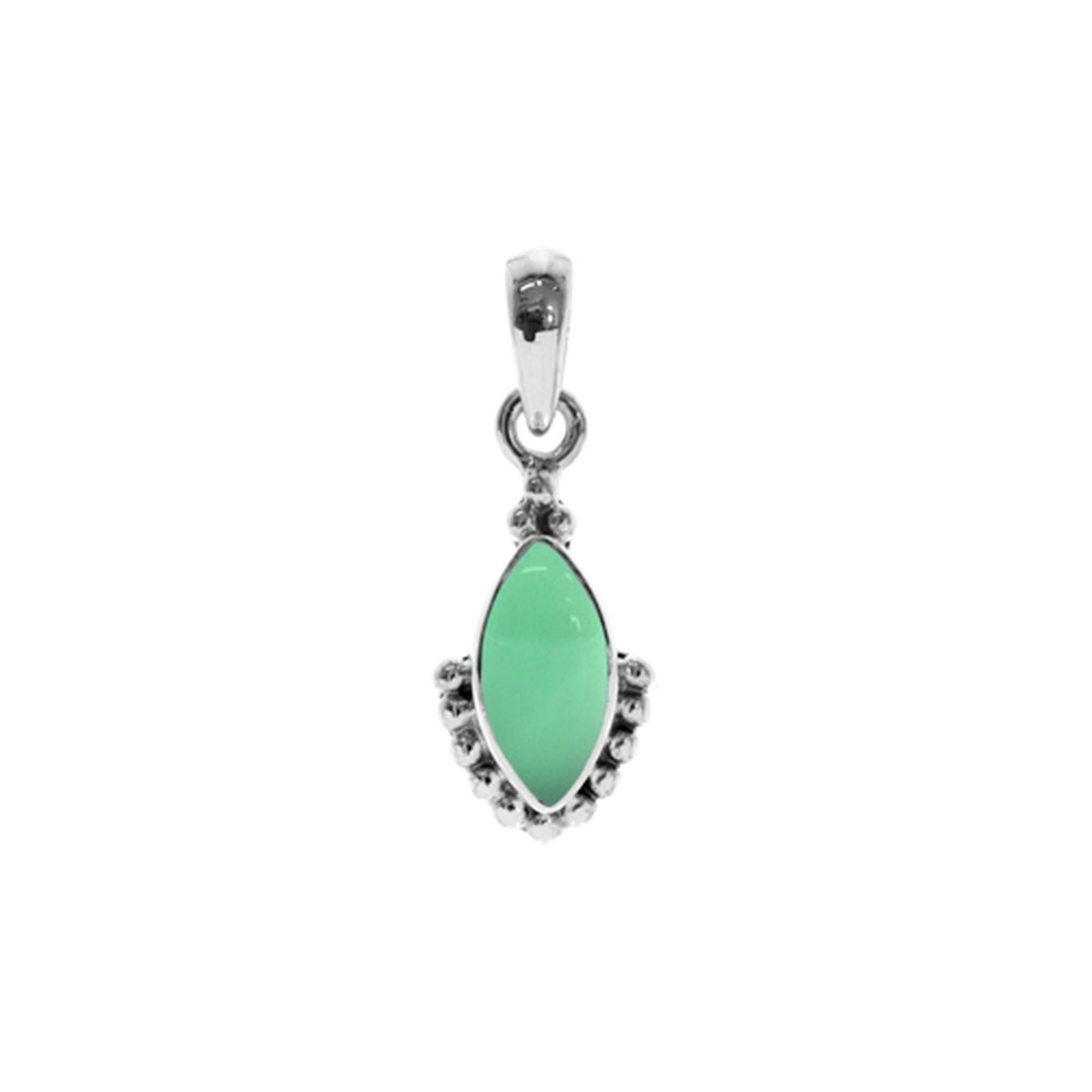 Boho marquis green agate and silver pendant with oxidised ball detail