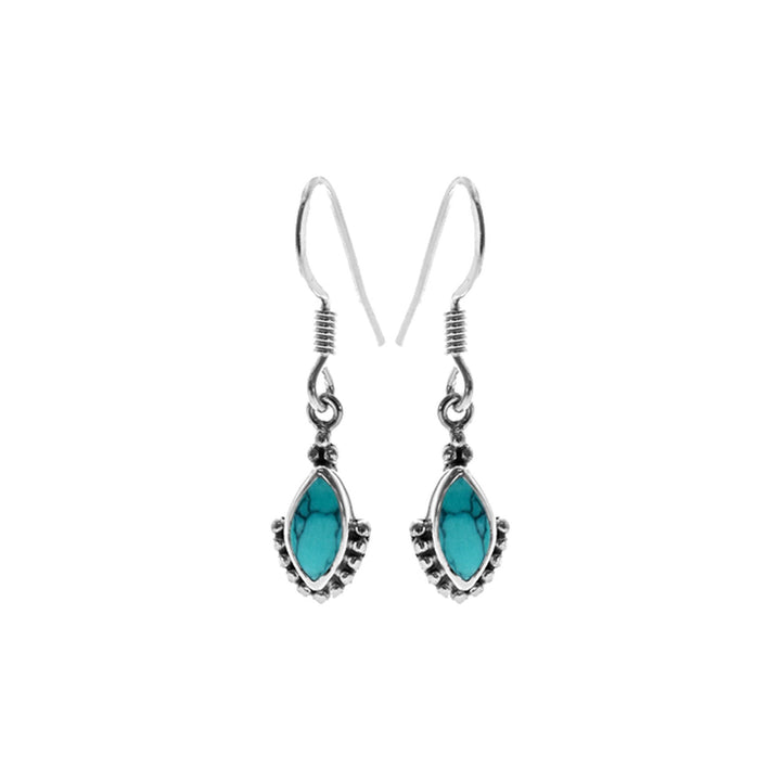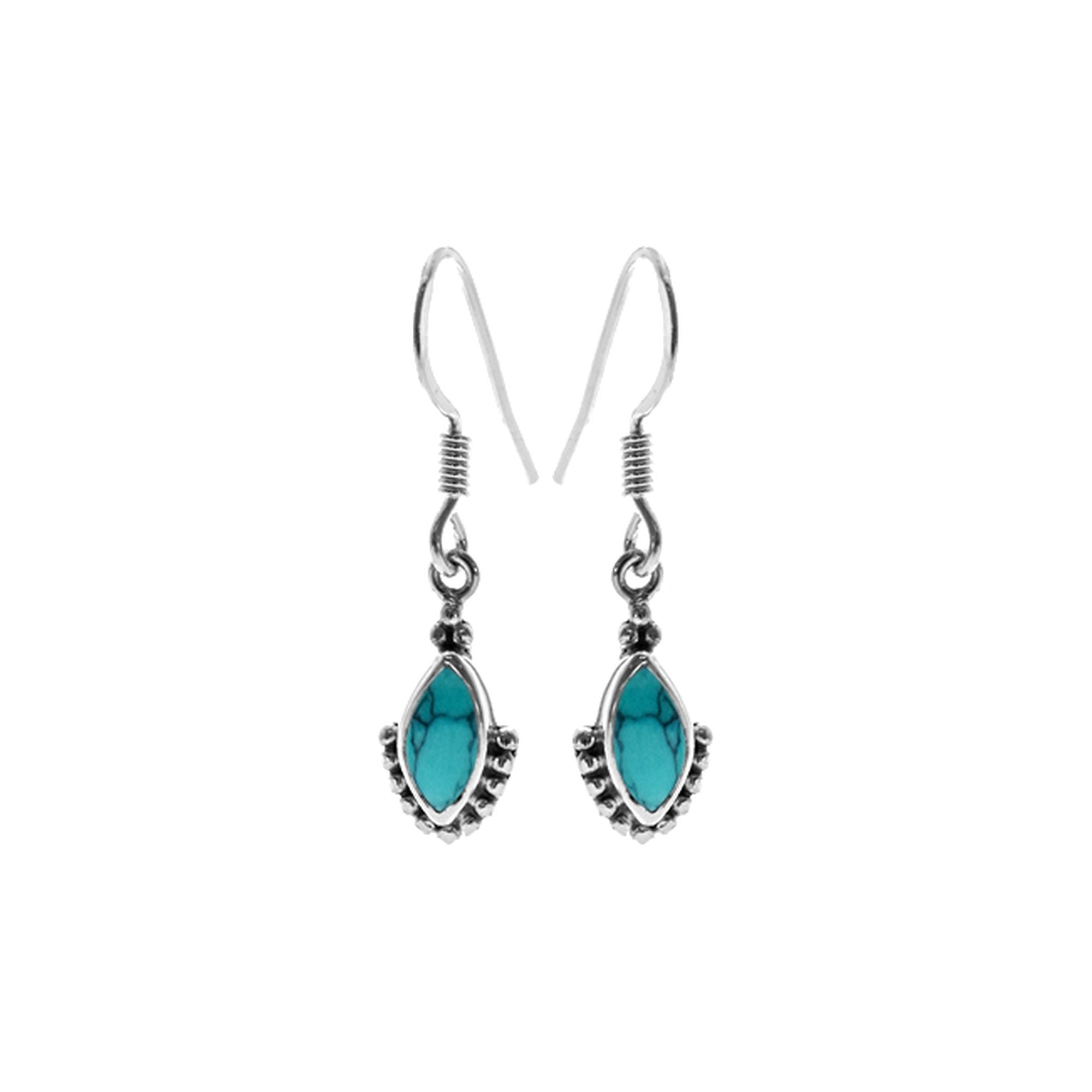 Boho marquis turquoise silver earrings with oxidised ball detail