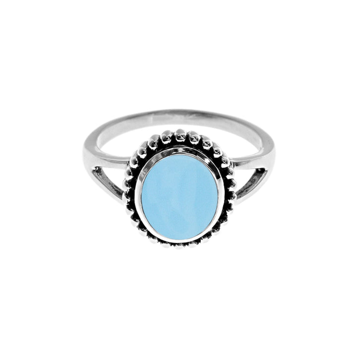 Isla oval blue chalcedony oxidised ball detail ring