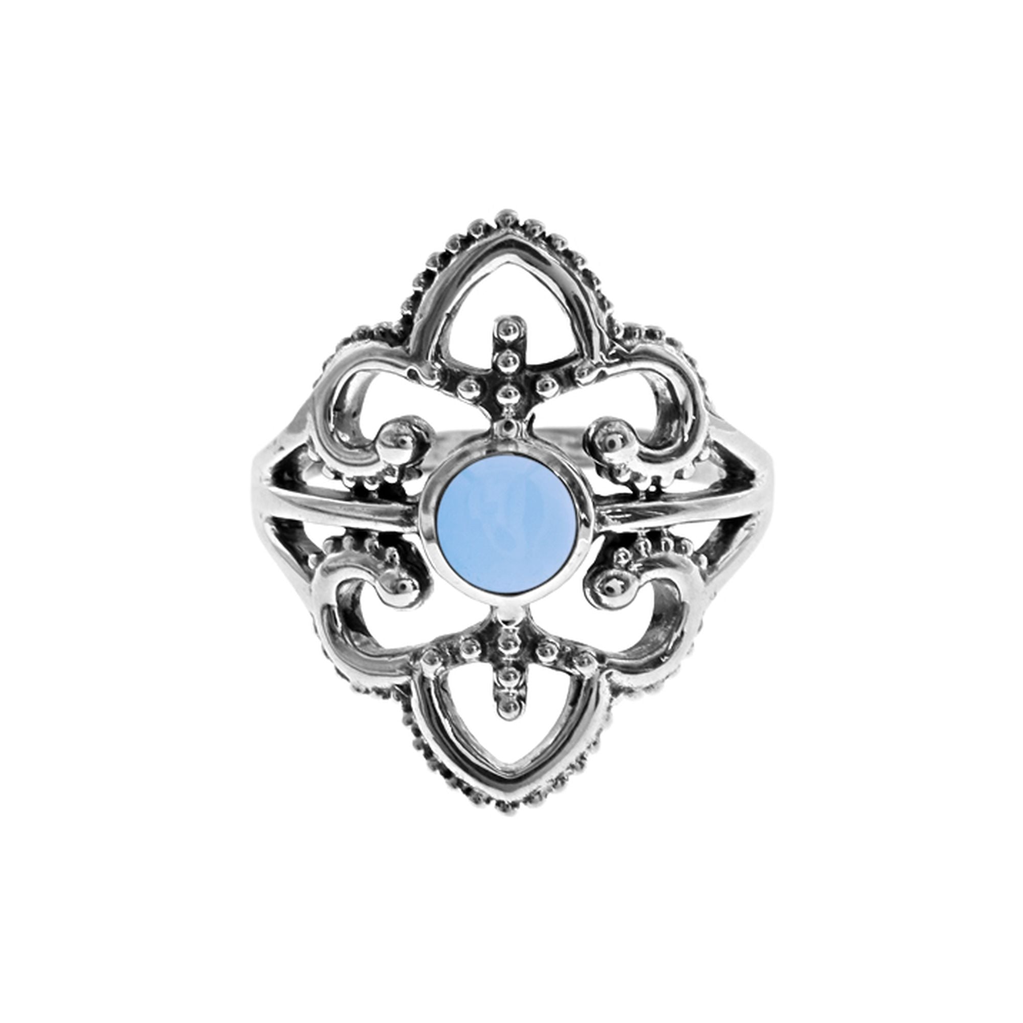 Isla tribal shield blue chalcedony ring