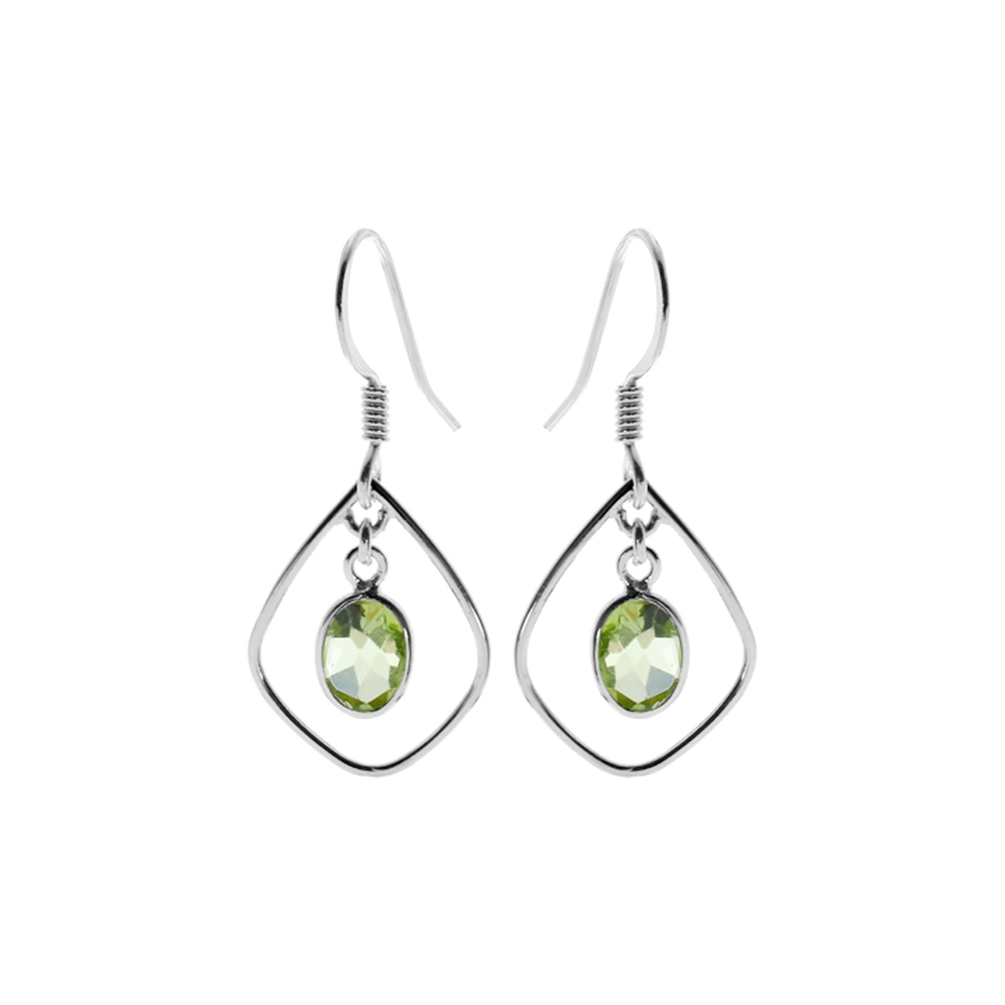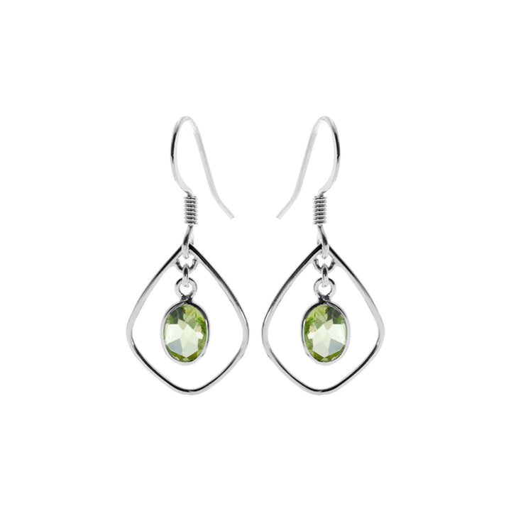 Silver open teardrop earrings with oval faceted peridot