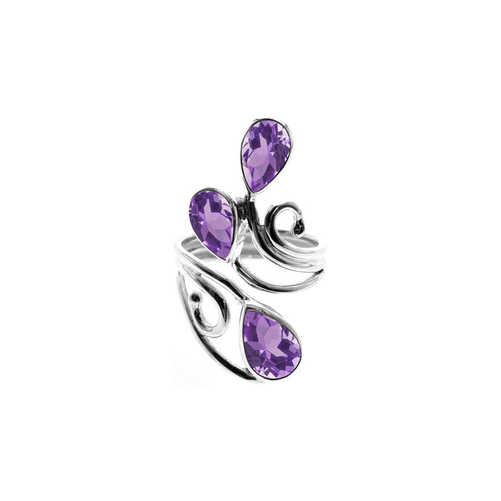 Ivy triple amethyst facet teardrop open swirl ring