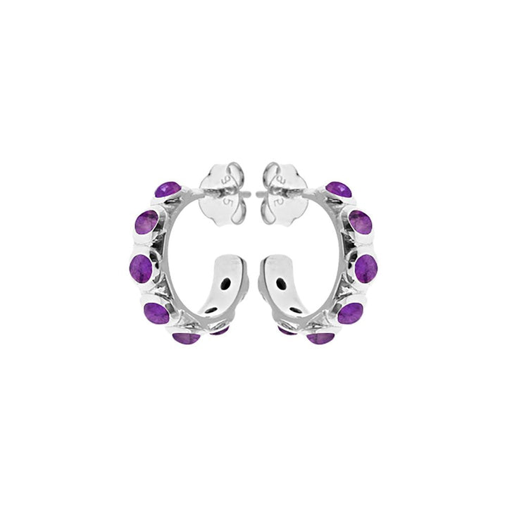 Chunky silver and multi amethyst set stud topped hoops