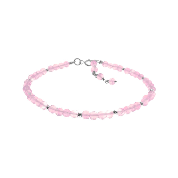 4mm grouped rose quartz and silver bead bracelet