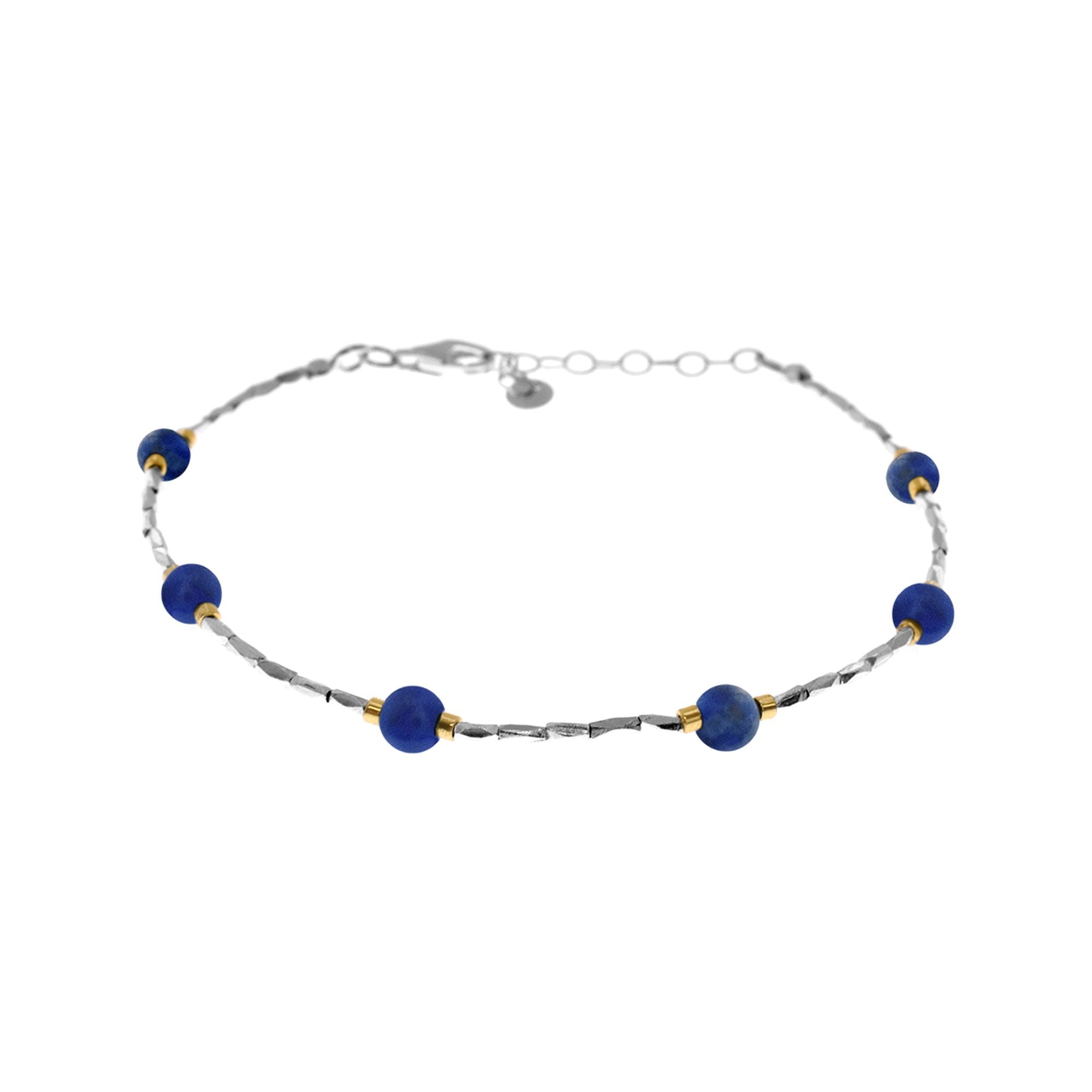 Diamond cut silver and lapis lazuli bead bracelet with gold accents